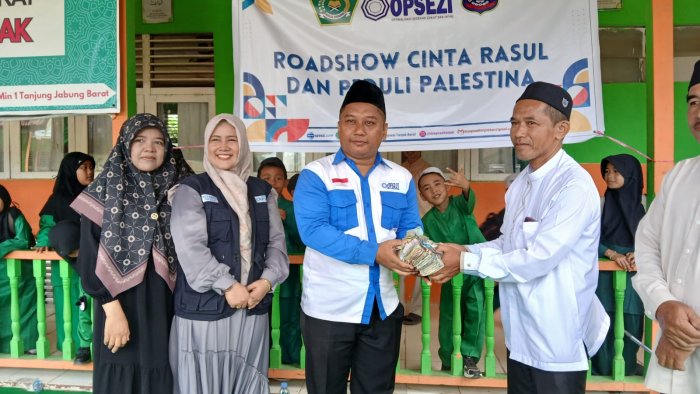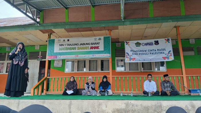 Tanjung Jabung Barat - MIN 1 Tanjung Jabung Barat melaksanakan kegiatan Roadshow Cinta Rasul dan Peduli Palestina pada hari Jumat, 24 Oktober 2025 bertempat di halaman madrasah. Acara ini menjadi salah satu program keagamaan dan pembinaan karakter peserta didik melalui cinta kepada Rasulullah SAW serta menumbuhkan rasa empati dan solidaritas terhadap sesama, khususnya saudara-saudara di Palestina.